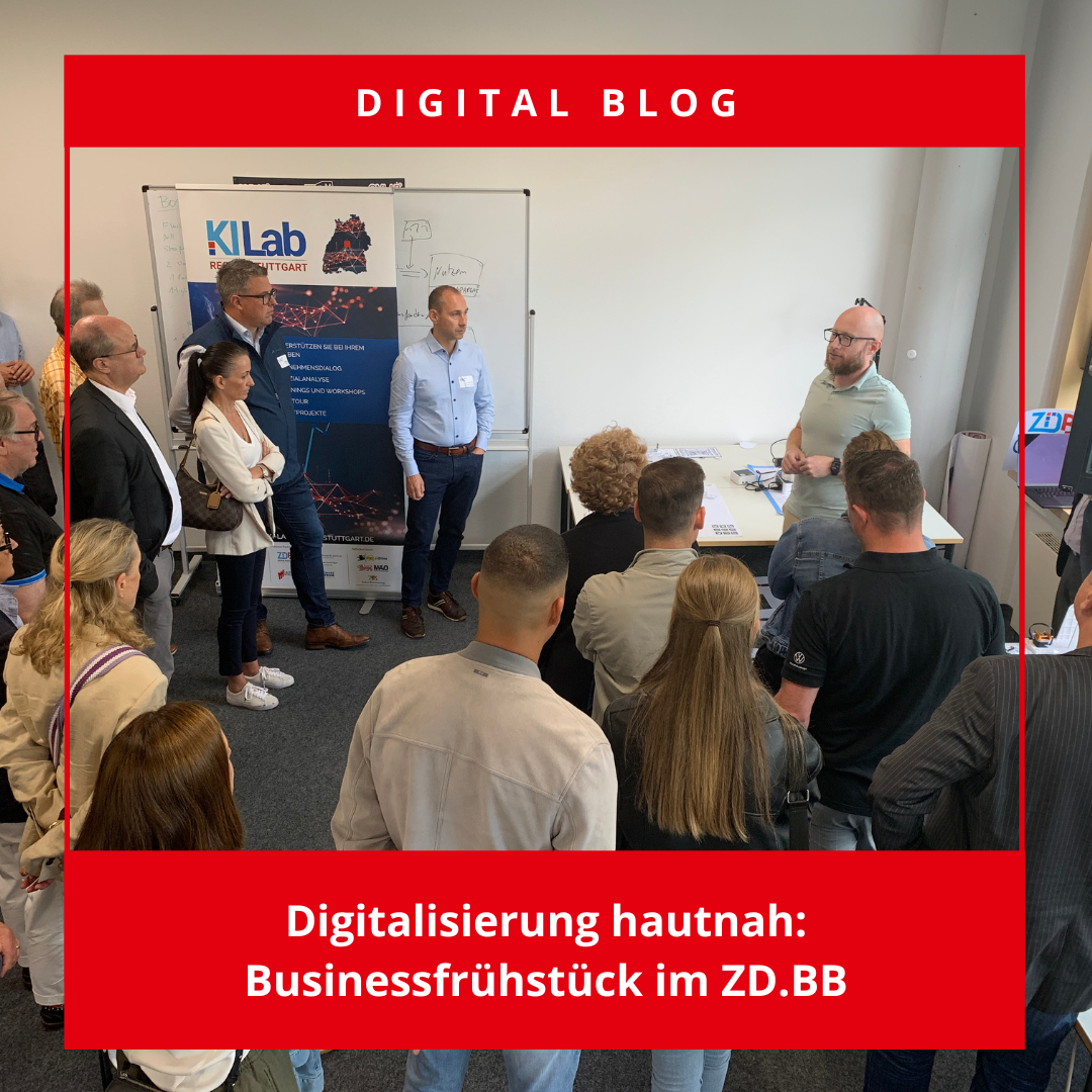 Den Abschluss bildete ein gemeinsames Frühstück mit Raum für Networking, Diskussionen und den persönlichen Austausch. Die offene Atmosphäre, kombiniert mit konkreten Impulsen aus der Praxis, sorgte für positive Resonanz bei den Teilnehmenden und zeigte: Digitalisierung wird dann wirksam, wenn sie nah an den Bedürfnissen der Unternehmen vermittelt wird. Mit Veranstaltungen wie dieser bringt das ZD.BB Unternehmer:innen, Verwaltung und Innovationstreiber zusammen – und macht den digitalen Wandel erlebbar. Mehr Eindrücke gibt es in der Bildergalerie 👇