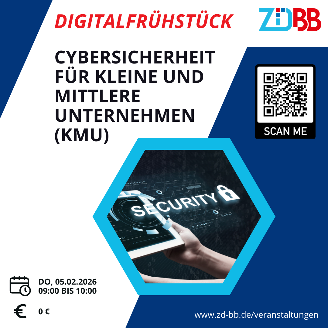 Do05Feb9:00Do10:00ZD.BB Digitalfrühstück: Cybersicherheit für kleine und mittlere Unternehmen (KMU)