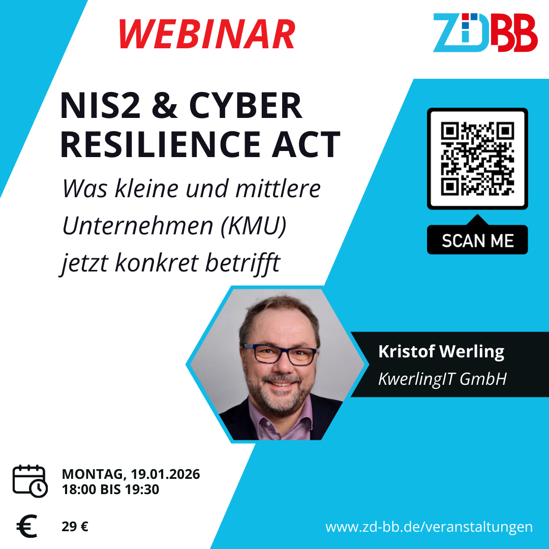 Mo19Jan18:00Mo19:30NIS2 & Cyber Resilience Act – was KMU jetzt konkret betrifft