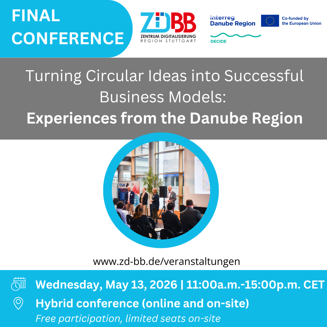 The Joint Conference of the Interreg Danube Region Project DECIDE “Digital Services for Circular Economy – a Toolbox for Regional Developers & SME” and the EU Strategy for the Danube Region, Priority Area 8, Working Group Circular Economy and Bioeconomy focuses on how circular ideas can be turned into economically viable, environmentally effective, and socially beneficial business models under real-world conditions. It brings together strategic, operational, and systemic perspectives on the circular economy and bioeconomy.