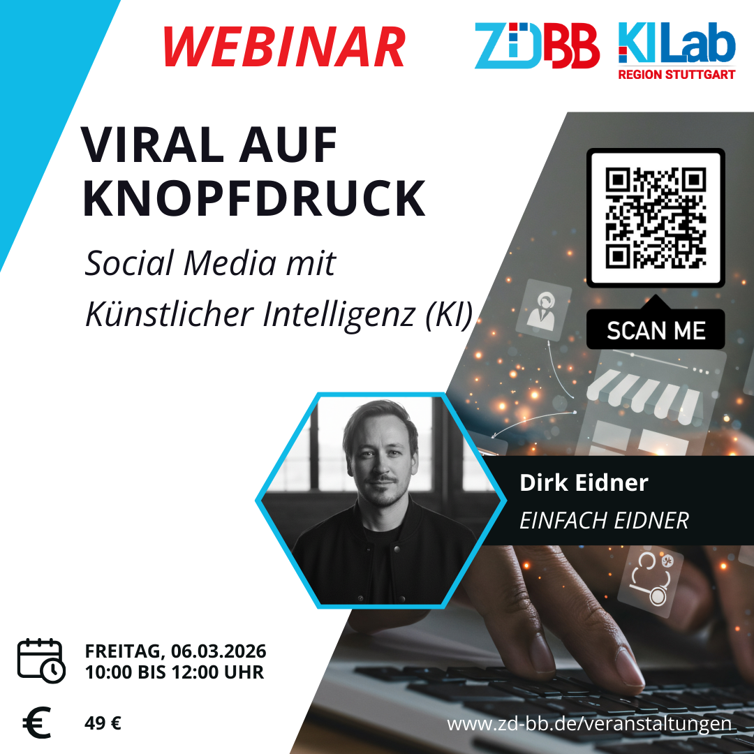 In diesem 2‑stündigen Live-Online-Seminar vermittelt Dirk Eidner, wie man mit Künstlicher Intelligenz (KI) den gesamten Social-Media-Prozess professionalisiert – von der ersten Ideenfindung über die strategische Strukturierung bis hin zur Erstellung eines fertigen Content-Kalenders. Auch Nutzern ohne Vorkenntnisse vermittelt er, wie KI passende Themen generiert, Beiträge verkaufsorientiert aufbaut und mehrstufige Kampagnen plant. Neben Texten werden Zitatbilder, Mehrwert-Grafiken, Karussells und erste kurze Videos mit KI erstellt – direkt einsetzbar auf LinkedIn, Instagram oder TikTok. Zusätzlich zeigt Dirk Eidner, wie man einen individuellen KI-Brand-Assistenten aufbaut, der den eigenen Tonfall und Stil kennt und zukünftige Social-Media-Arbeit erleichtert. Der Zeitrahmen bleibt bewusst kompakt und effizient.
