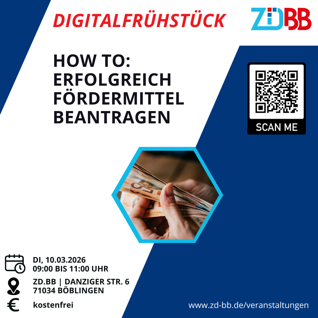 Wir laden Sie herzlich zum ZD.BB Innovationsfrühstück im März ein, das sich dem Thema Fördermittel für die Digitalisierung widmet!