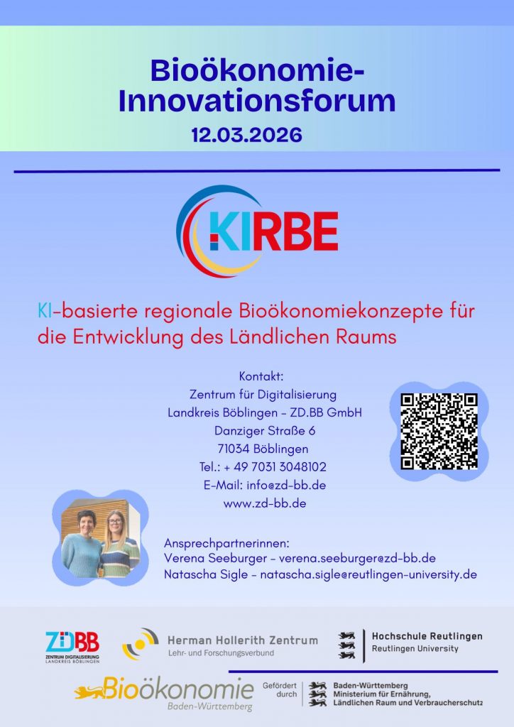 Die Veranstaltung wird im Rahmen des Projekts KIRBE – KI-basierte regionale Bioökonomiekonzepte für den ländlichen Raum durchgeführt.