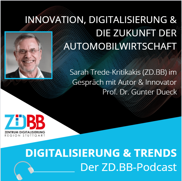 In dieser Folge des ZD.BB-Podcasts spricht Sarah Trede-Kritikakis mit dem Autor & Innovator Gunter Dueck über Digitalisierung und was diese mit der Wirtschaft und Unternehmen macht.